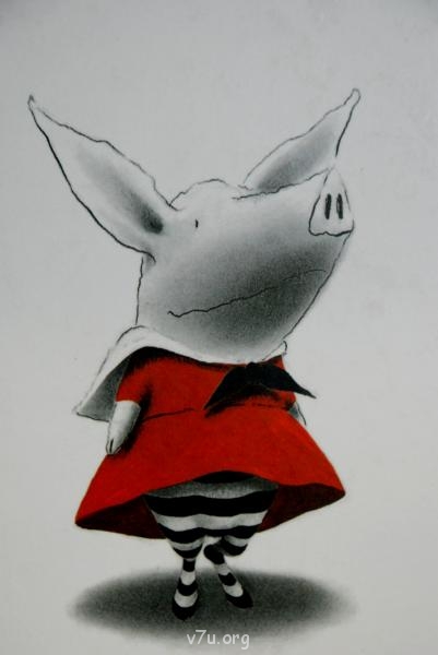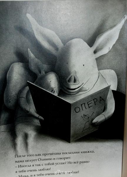 Не поленилась взять сегодня с собой в книжный магазин фотоаппарат. Вот это и есть Оливия из книги Яна Фалкинера с его же сюрреалистическими иллюстрациями. Книга имеет подзаголовок: для маленьких фантазеров и их родителей. Все повествование состоит из коротеньких ремарок, рассказывающих о жизни хрюшки, они до боли напоминают примитивные посты самого Эдуарда. Эдик, признайтесь, не в честь ли этой барышни вы назвали свою мнимую дочку? А на последнем рисунке, я так понимаю, вы вместе с ней изображены?