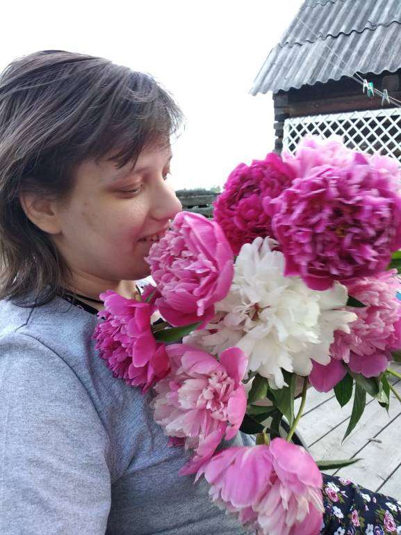 Саша впервые в жизни увидела пионы. Впервые в жизни вдохнула их аромат. Запах этих пышных цветов ей очень понравился.
