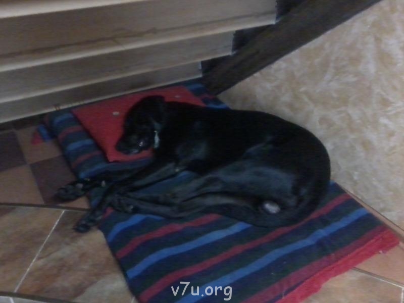 лизонька, кобель наш видимо смесь какой-то охотничей с кем-то ещё ,типа лабрадора . Тут под лестницей темнова-то да и спит он,а так если его показать то "лошадь " ещё та... шерсть всегда блестит очень сильно.если передние лапки мне на плечи ставит то его морда выше меня ( я ростом тоже клоп 162 см) ,а когда по поляне и участку зимой бегает по снегу то мышей выслеживает и как найдет - в стойку встает : хвост как палка параллельно земле ,одна передняя лапа поджата ,весь как струна вытянется. Ну и голосом его Бог не обидел ,лает громко. Если хвостом когда виляет случайно мои ноги задевает ( а девочкам лицо как раз на этом уровне) то потом синяки от этого хвоста .