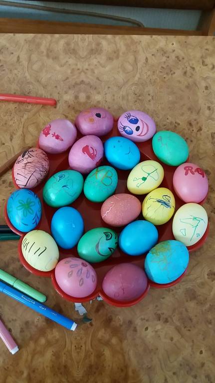 Друг у нас в садике есть, тоже с ветрянкой. Так мы в гости друг к другу ходим . Вчера у нас яйки красили и разрисовывали.