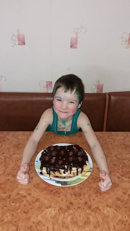 Маринчик, кулинарные интересы не угасают, Но уже без такого фанатизма как раньше. Но все равно интересуется что я делаю, и что кладу в блюда. Вчера уболтал меня на тортик. Так как с тестом я вообще не особо дружу, то сделали тортик из замороженного теста. А крем я умею делать вкусный заварной- легкий,вкусный и не жирный