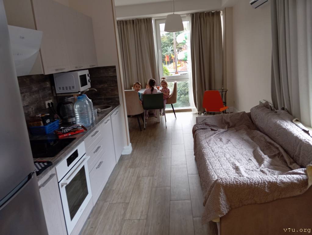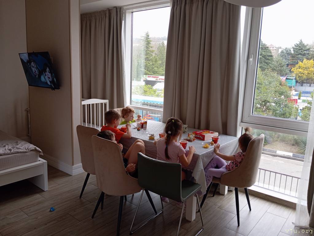Тепло, плюс 15, дети радуются цветочкам и зелени. Окна выходят на парк аттракционов, в двадцати метрах океанариум. По окрестностям еще не ходили- сил нет, завтра.