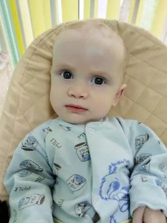 Характер: Спокойная, контактная девочка. В ответ на эмоциональный разговор взрослого издает звуки, улыбается, Ева знает свое имя (поварачивает голову). С удовольствием, подолгу действует с игрушками - размахивает, перекладывает, бросает. Ева умеет переворачиваться с живота на спину, стоять с помощью взрослого. Передвигается переставляяя руки и перекатываясь с одного бока на другой. Ест с ложки, пьет из чашки, которую держит в руке взрослый.