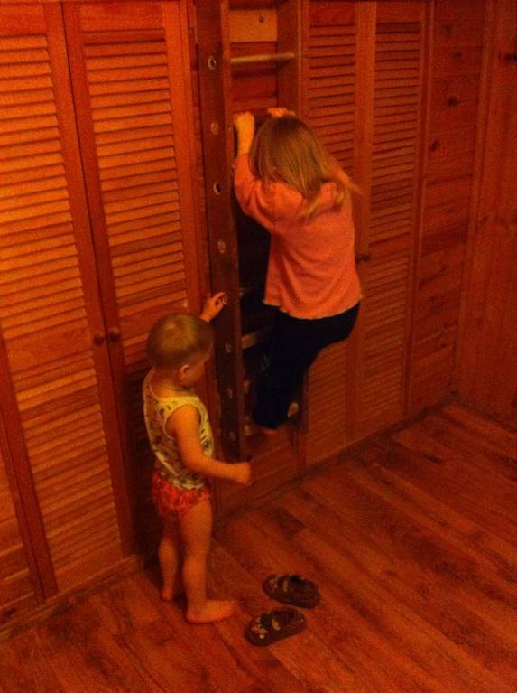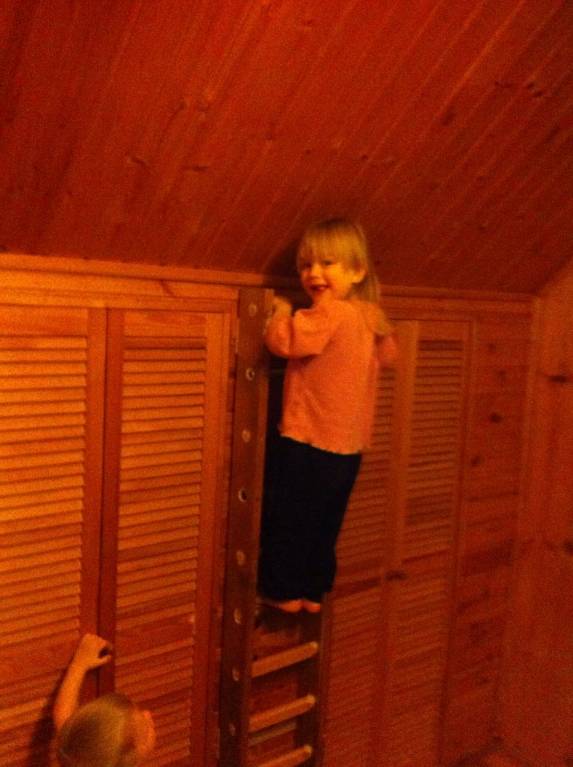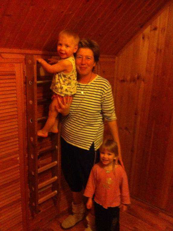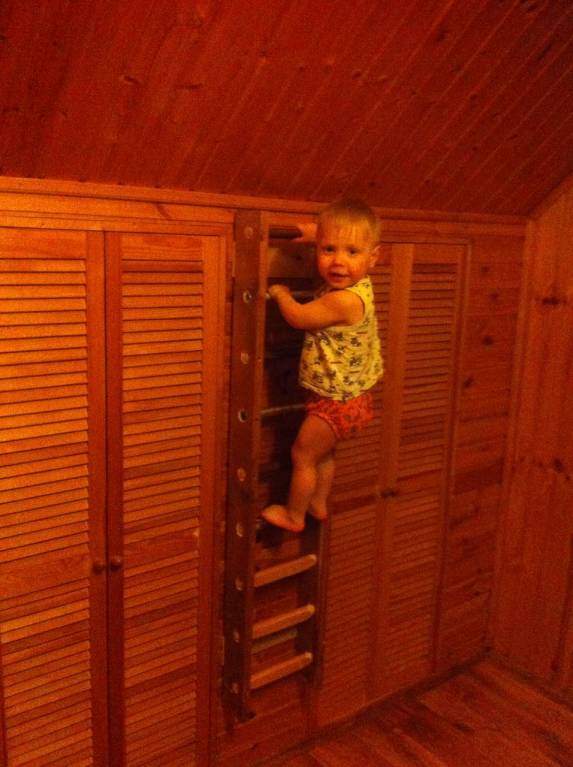 Сегодня папа потратил весь свой выходной и сделал детям шведскую стенку из черенков и старых грабель и еще что-то нашлось в столярке у него-)))