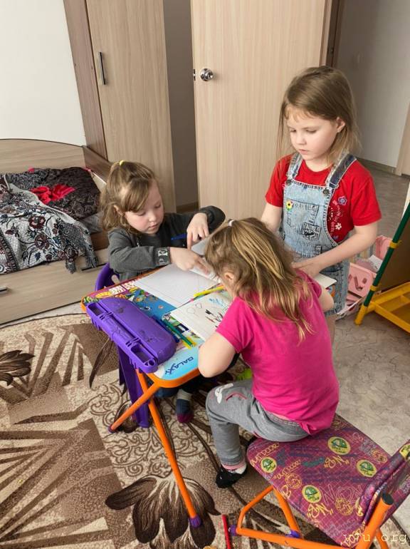 Так и сложилось. У Натальи и Андрея Никитиных пятеро своих детей. Но старший сын Виталий недавно женился и живет своей семьей. Семнадцатилетняя Арина – будущий преподаватель ИЗО. Подрастают и младшие дети: Жене исполнилось 15 лет, Андрею - 12, а Юле - 7. Словом, в доме стало гораздо тише, а это так непривычно… Супруги стали думать о том, что в детском доме кто-то тоже хочет говорить заветные слова «мама» и «папа». Потом увидели пост, что недалеко от их родной Новониколаевки в районном центре Асино живут такие прекрасные детки. Никитины понимали, что для выдачи заключения опека должна будет проверить квадратные метры и ждали окончания строительства дома, в который въехали 28 декабря. (На общем фото они во время переселения!). А в январе-феврале Наталья уже обучалась в Школе приемных родителей.