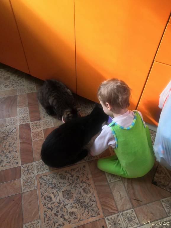 -А еще Карина не дает прохода коту, повсюду ползает за ним и весело смеется!