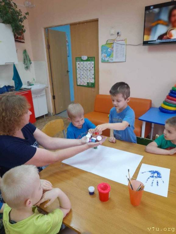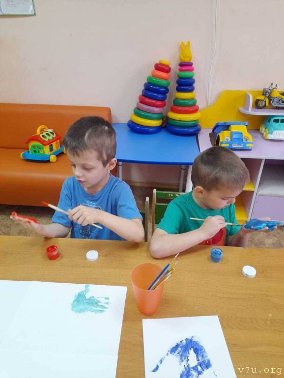 ребёнок зрячий, много рисует красками