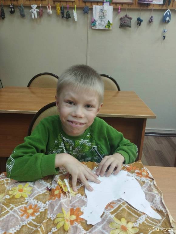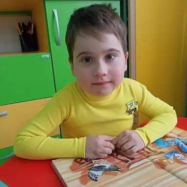 Святослав — добрый, жизнерадостный и послушный мальчик, он особый ребенок, развивается в своем темпе и нуждается в постоянной заботе взрослых. Он не говорит, но произносит звуки и звукокомплексы, может донести до взрослых свои желания. Святик понимает обращенную речь на бытовом уровне, с удовольствием идет на контакт, любит отвечать на вопросы звукоподражанием или с помощью звука, с меняющейся интонацией. Он знает имена детей, с которыми проживает в группе. Святик умеет общаться посредством альтернативной коммуникации, через картинки, на все вопросы показывает ответы, активно использует мимику. Он любит много заниматься, умеет подолгу внимательно слушать сказки и музыку, смотреть мультфильмы, играть в настольные игры. Он выбирает все виды познавательных игр, рисует, собирает пазлы, понимает смысл сюжетно-ролевых игр. Святик любит играть с конструктором, обыгрывает свои постройки в игре. Он правильно играет в игрушки, может долго сам себя занимать, очень любит музыкальные игрушки и всю деятельность с элементами музыки. Святик знает геометрические фигуры и цвета, понимает день и вечер, владеет прямым счетом в пределах пяти. Он научился правильно держать ручку, кисточку и карандаш, отлично выполняет работы как по образцу, так и самостоятельно. Ему нравится рисовать, самостоятельно способен придумать сюжет рисунка, очень любит рисовать транспорт. Святослав проявляет интерес ко всем мероприятиям в учреждении и по возможности во всех участвует. Он стал намного физически активней, стал больше ходить, начал бегать и танцевать.