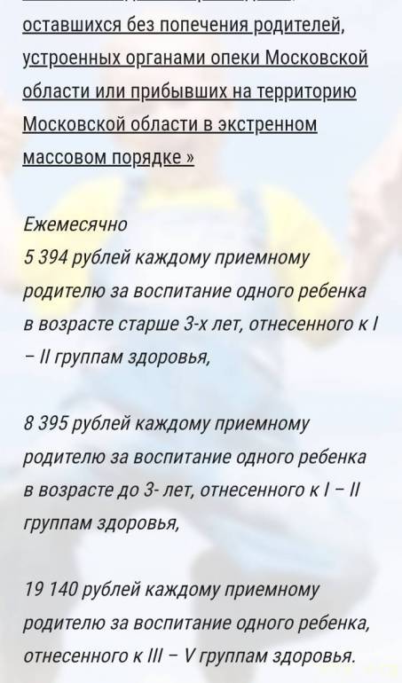 Материальная поддержка семей, принявших на воспитание детей-сирот