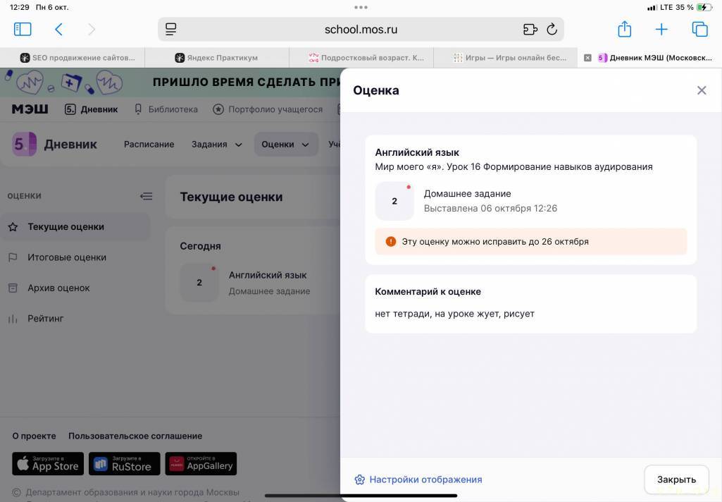 Электронный дневник заполнен вовремя, все выставлено и дз написано.