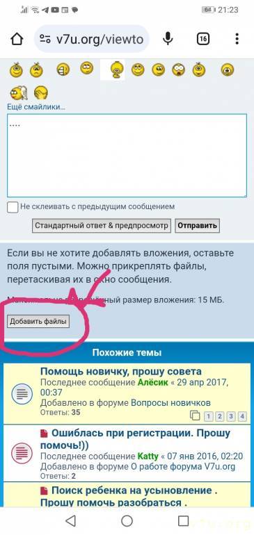 добавить файлы, если писать сообщение, то ниже смотрите