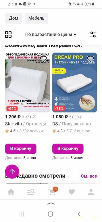 Лора Макс., я нам такие полтора года назад купила, надоели старые тощие. Мне очень нравятся, ещё и для гостей купила такие же и 70×70, и у родителей в квартире для себя. Пухлые, не жесткие, не тощие, толстый съемный чехол, наполнитель можно убавлять. Но мужу не понравилась, спит на старой, любит плоские. Брала, правда, на 200 р дешевле, чем сейчас
