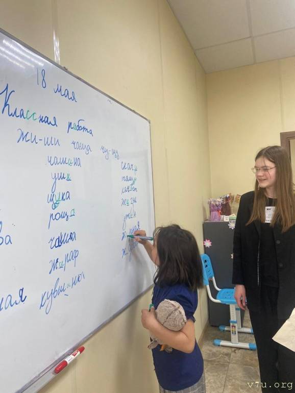 Илона, 9 лет, у доски. В одной руке маркер, в другой игрушка. Учатся с Басиком вместе, друг без друга никуда. Они обе у меня могут в школу игрушки спросонья схватить, а портфель забыть. Догоняю в подъезде с портфелями и воплями.