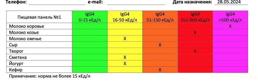 Копию результата анализа lgG4 (непереносимость) от 28.05.2024