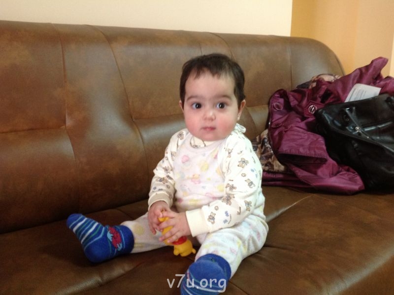 Утром увидеть девчушк не удалось. Был сончас. Приехала после работы. Нянечка выносит на руках - а она такая миниатюрная! раза в 2 меньше чем на фото. И говорит: идите в гостевую, как наиграетесь, позвоните по тел, я заберу. А я не знаю, что с ней делать! Она такая тихоня, посадила на диван, она на меня луп-луп своими большими глазенками и молчит. поползали по дивану, походили по корридору за ручки, но еще не уверенно, зубки режутся-все в рот тащит. достала планшет, чтоб для мужа ее сфотать, так она все игрушки побросала и давай по планшету ручками наяривать, только успела отобрать. Пару раз начинала всхлипывать, но быстро отвлекается. А через час как начала рыдать, аж взахлеб, минуты 2, а мне показалось вечность! Я не знаю, что ж делать! И сюсю и погладила и игрушка не помогла. Проходит случайно нянечка и мне: Вы ее на ручки возьмите и походите. Взяла, подошла к фото на стене, а она хоп -и уже улыбается!