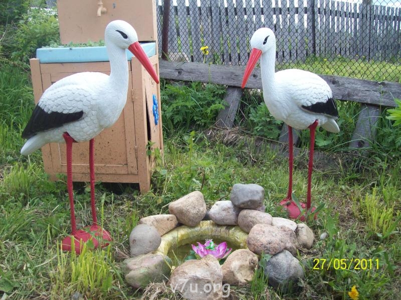 А теперь я ко всем с аистами пристаю, очень аистов хочется. Они у вас самодельные, если да то поподробнее плииз и ещё, что там у вас в прудике красивое?