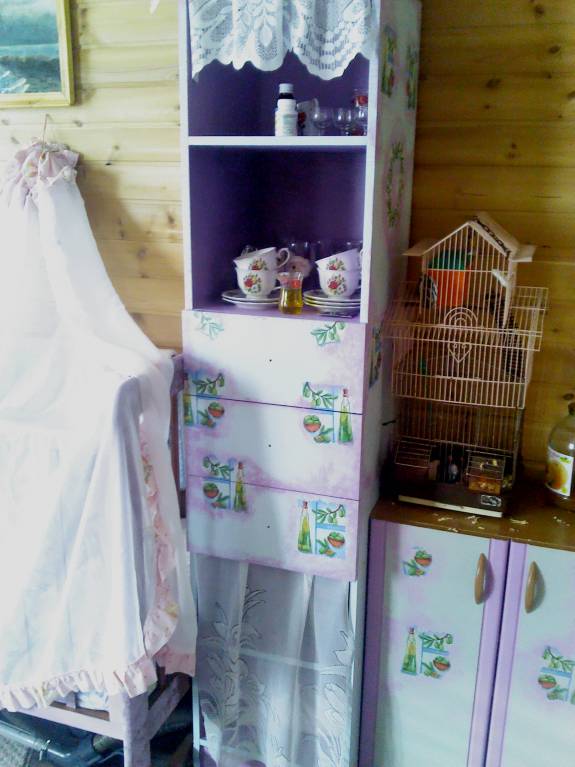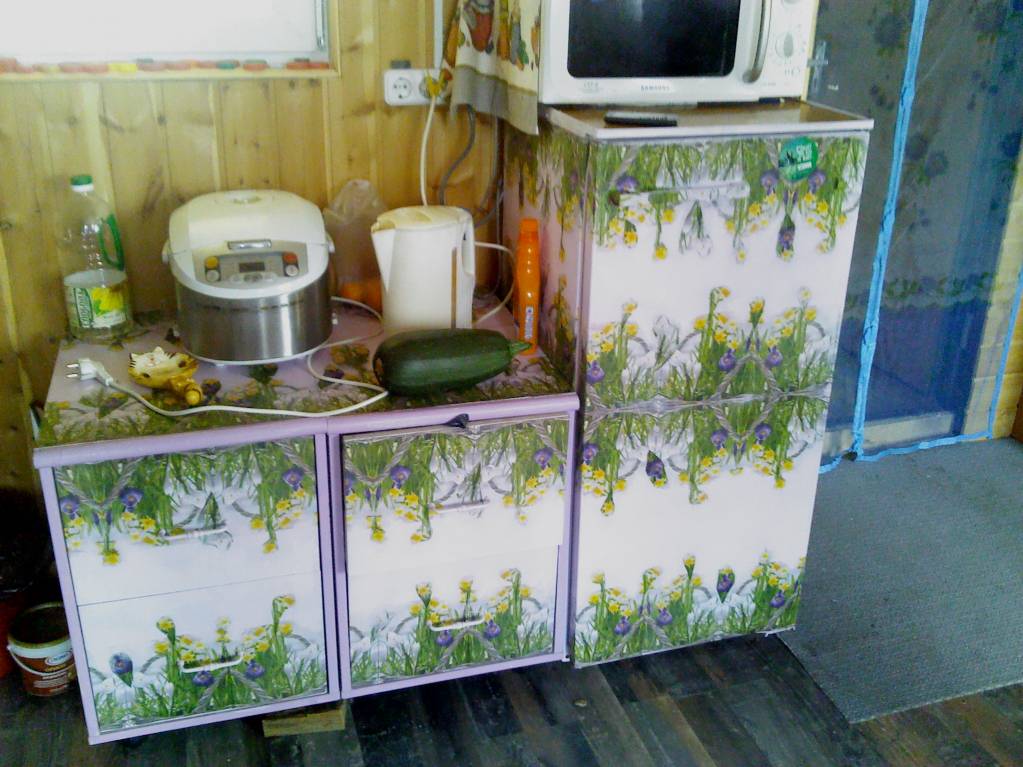 Декупаж старой мебели и холодильника "Саратов". На даче.