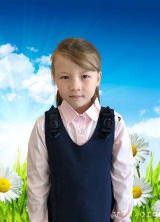 Характер: Девочка общительная, контактная, веселая, добрая, старается любому оказать помощь и поддержку. Все ее поступки и слова свидетельствуют об уважении к другим людям. В контакт с детьми вступает хорошо, устанавливает дружеские отношения. В играх со сверстниками старается быть лидером. Со взрослыми общается хорошо, нормы и правила общения соблюдает. К учебе относится положительно, добросовестно выполняет домашние задания. Любит рисовать, петь, танцевать, охотно принимает участие в общешкольных мероприятиях. Эмоционально привязана к младшей сестре и младшему брату.
