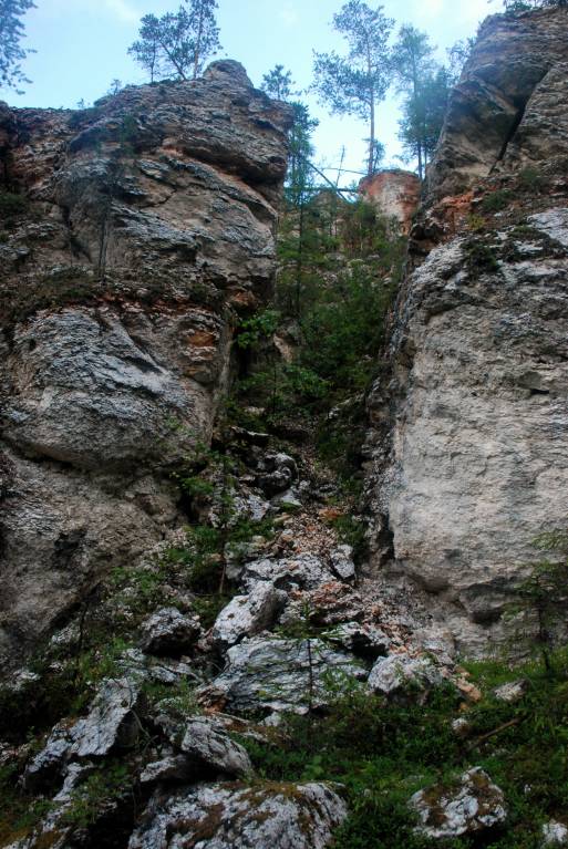 На следующий день нас ждал Тараканий лог. Логами, или щельями, на Севере называют глубокие овраги. Это места, освободившиеся от древнего ледника, оставившего после себя каменные ущелья. В Тараканьем логе вас со всех сторон будут окружать отвесные карстовые стены, покрытые мхами (их здесь около 20 видов) и неброскими, но очень изящными, просто акварельными северными цветами. Цветов здесь много, очень распространены орхидеи (их здесь тоже около 20 видов), большинство занесены в Красную книгу (Венерин башмачок, калипсо, пальчатокоренник, грушанка, майник, любка двулистная), часто встречается и местная лиана - княжик сибирский.