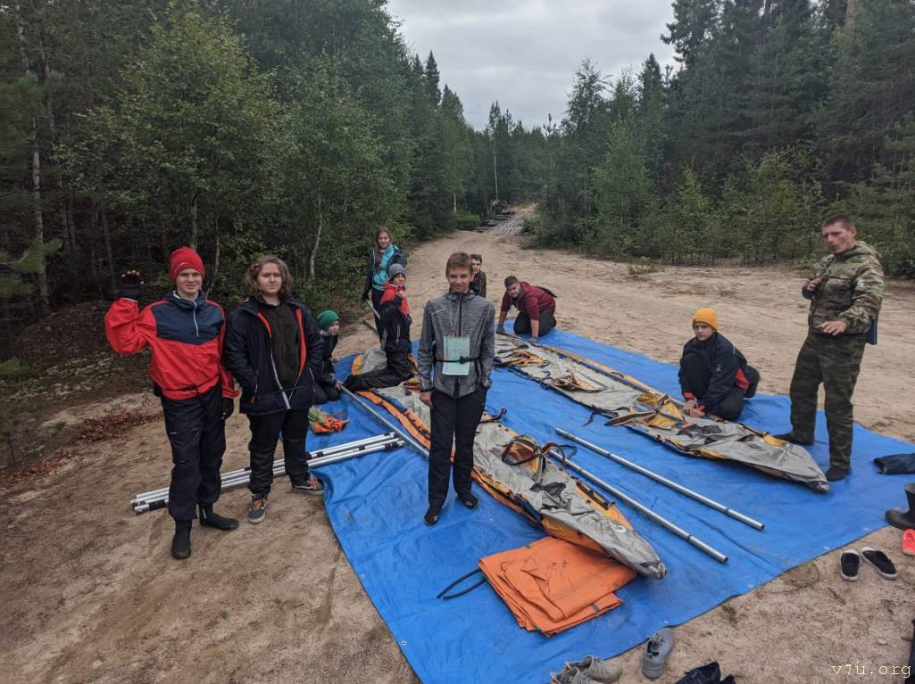 Группа ребят, которым предстоит штурмовать бурные реки Карелии, пройти 180 км на катамаранах, включая водные преграды (пороги и заторы с обносами), сдать на 2-ю категорию и закончить маршрут трехдневным САМОСТОЯТЕЛЬНЫМ походом, когда руководителем станет один из ребят. Среди стартующих сегодня две девушки (это в нашей группе, во второй группе еще три), не считая инструктора. Попутного ветра и семь футов под килем, ребята!