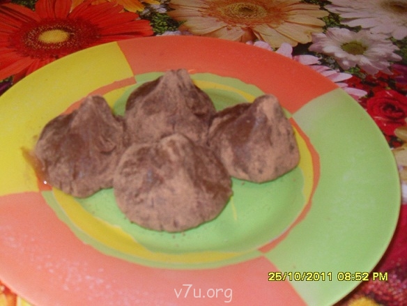 это исходная масса. А вторая фотография- слепленные и обваленные в какао.