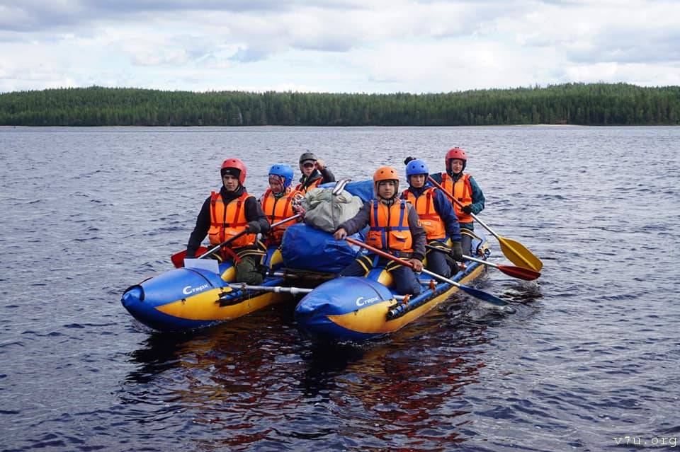 Вчерашний переход группа сделала на "ура". 25 км, 12 порогов пролетели гораздо быстрее, чем планировали. Инструктора рассчитывали, что группа придет на стоянку часов в 8 вечера, а ребята рванули и пришли на указанное место на 4 ч быстрее - гребли изо всех сил, так что катамараны летели птицами. Сегодня у них дневка на какой-то крупной туристической стоянке, где встречаются группы с разных маршрутов, где есть деревенские домики и даже ларьки со всякой всячиной. После каш и супов пацаны будут отрываться...