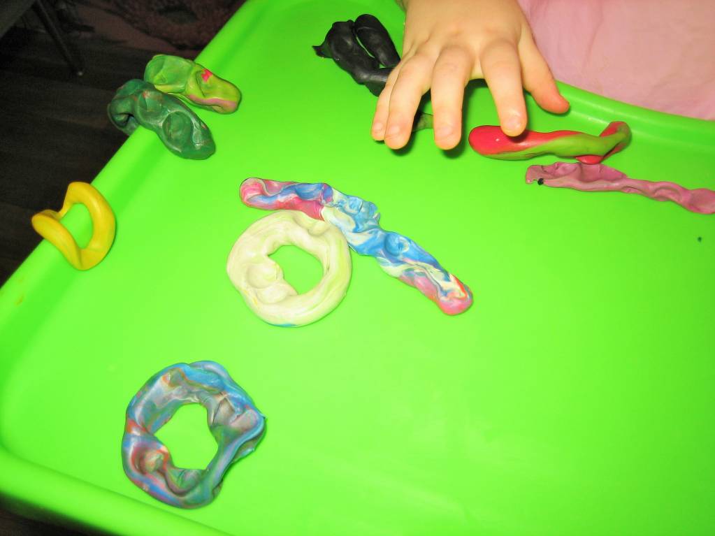 - Я катаю колбаски, шарики, делаю кубики, колечки, а дочь старательно всё это размазывает по столику
