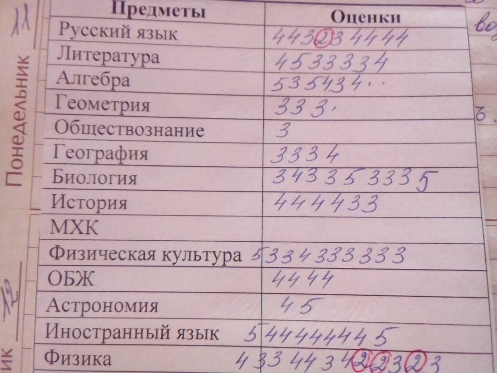 На прошлой неделе классный руководитель выписала текущие для сведения. Сегодня- в четверти по русскому 3.