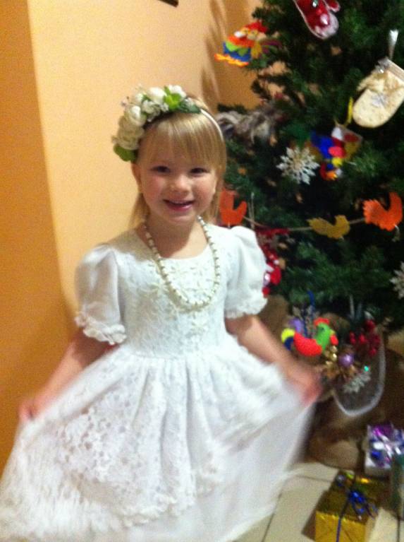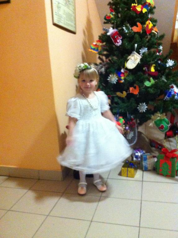 ...возле шкафчиков была суета из мамочек, бантов и шуршания бело-розового. В принципе я нечто подобное и ожидала, поэтому слава будде моя дочь в меня, мы собирались быстро и без капризов, в свое времяя так примерно собиралась в поход))) Утром закутала Настю в теплые болоневые штаны и пуховик, все наряды взяли с собой. Увидев суету в раздевалке и как народ стукается попами и нервничает, я усадила дочку в холле на диван в свой пуховик, быстро раздела и быстро одела, бусы , ободок и вуаля - принцесса готова!