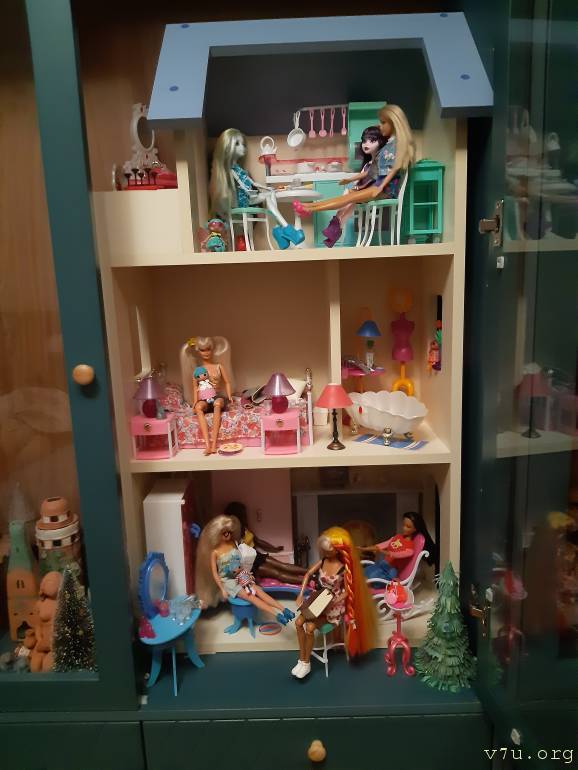 Я тоже куклами увлекаюсь, моя слабость - Барби 90-х. Также есть редкая куколка Бетти, обычная Барби, две темнокожие - старенькая и новая, полненькая, 3 куклы Монстр Хай. Живут в трехэтажном особняке, который стоит в отдельной витрине.