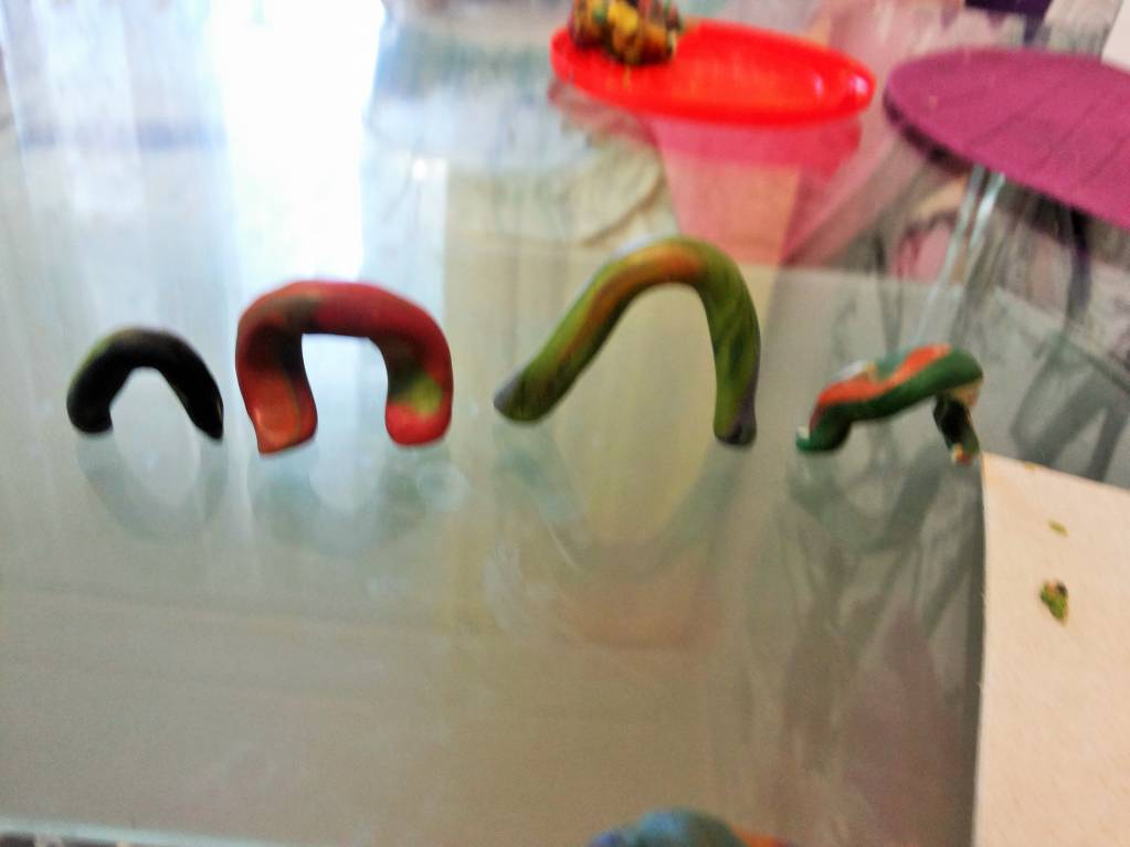 Я накатала колбасок, а дочь наделала из них арок (или гусениц).