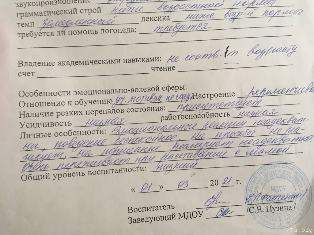 Ксюха, наплюйте на характеристику. То, что ваша девочка отличается от нормы, вы и сами знаете. Тяжело, когда это видят другие люди, тяжело это читать. Но то, что ребёнок немного отстает в развитии от нормотипичных детей, не делает её плохой или какой-то дефективной. Она всё равно ваша любимая девочка, такая, какая есть. Вы на её стороне и вы ей поможете преодолеть любые трудности.