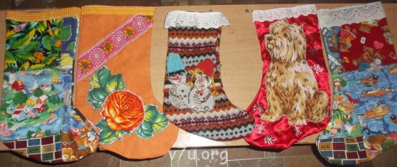А мы уже готовим подарки к Рождеству и Новому году.Таких сапожек нам надо в этом году штук 50.Я ничего не выбрасываю без предварительного осматривания.На эти сапожки пошли и старые свитера и блузки и пижамки.Чего только не используем для них...