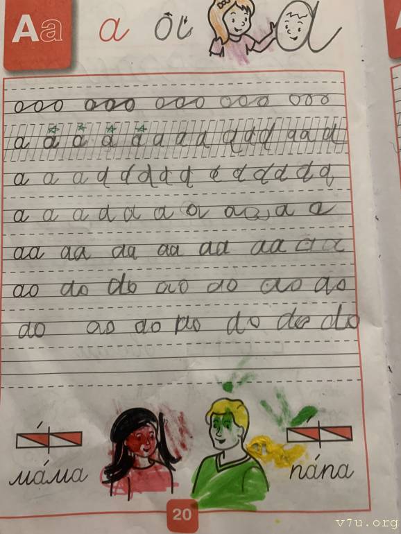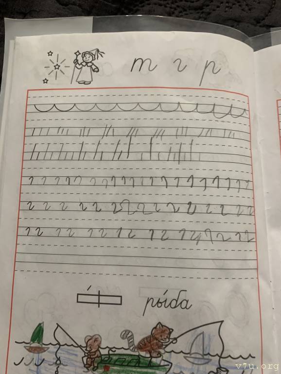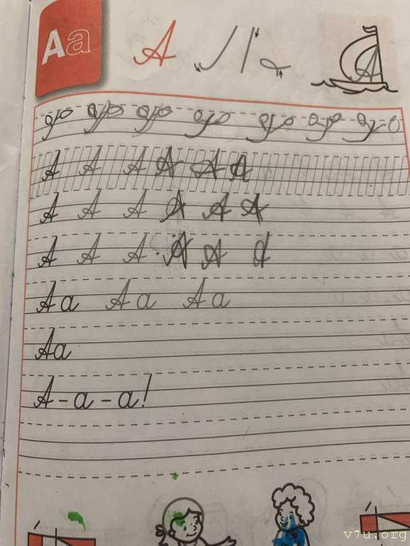 Она пишет в прописях,и это очень много для неё.