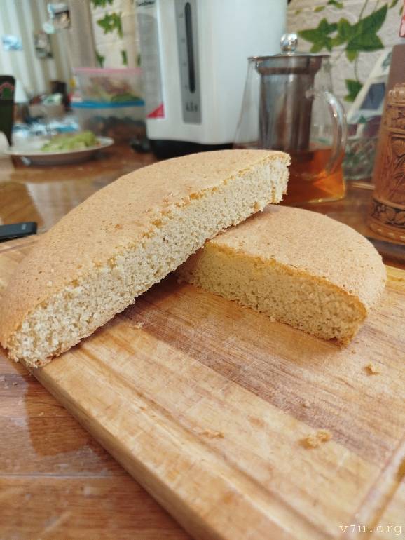 Не долго думая завела тесто для бисквита. Форма где то 20 см. 20 минут 160 градусов. Не привычно светлый, но пропекся.
