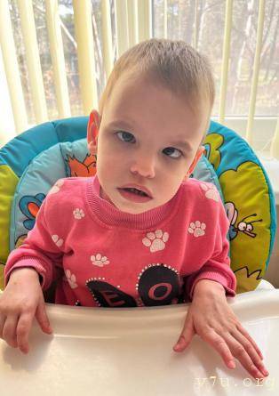 Малышка родилась слабенькой, но развивается хорошо. Уже сама ходит, в речи у нее уже есть лепет. Старается осваивать новое, повторяя за взрослыми. Особо радуют ее мелодичные звуки, любит танцевать под музыку. Малышка хорошо узнает знакомых, но с осторожностью встречает новых людей.