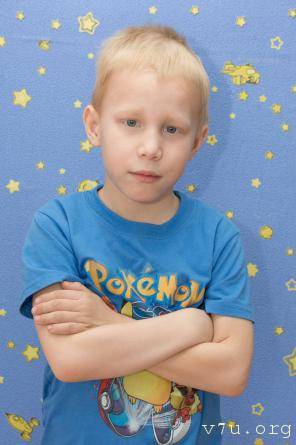 Характер: Добрый, послушный, ласковый мальчик. Общается со всеми ребятами в детском доме. С удовольствием посещает детский сад. Любит играть в игры со старшими детьми, собирать конструктор, слушать музыку, смотреть мультфильмы, кататься на велосипеде.