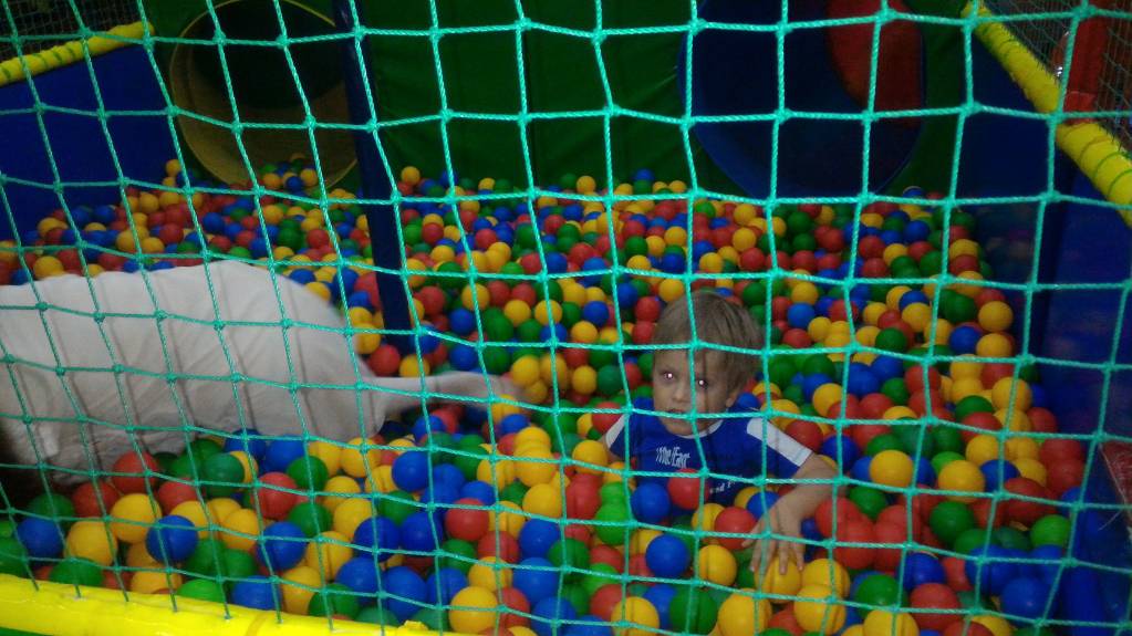 Всем спасибо за поздравления. На свой день рождения не получилось, но попали на племяшкин в детский городок. Сенька отрывался по полной. Фотать не успевала. Сам познакомился с мальчиками и организовал флешмоб. Родители валялись. Мальчик пригласил Сеньку побегать, мой объяснил, что бегать не может, предложил ползать. В результате половина детей перешла на четвереньки. Причем присоединялись постепенно по одному, многие сами не поняли зачем, но другие же ползают.
