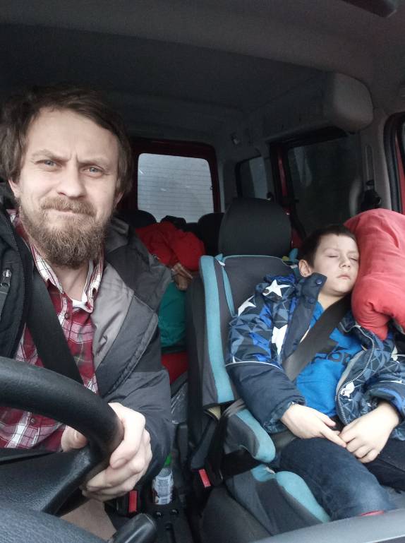Очень волнительно! Везёт муж домой нашего Мишу. Я не помню писала или нет, но так совпало, что на нашу немалую Тверскую область, он оказалась в Удомельском ДД. На родине мужа. Так что кушают суп у бабушки с дедушкой и в путь.