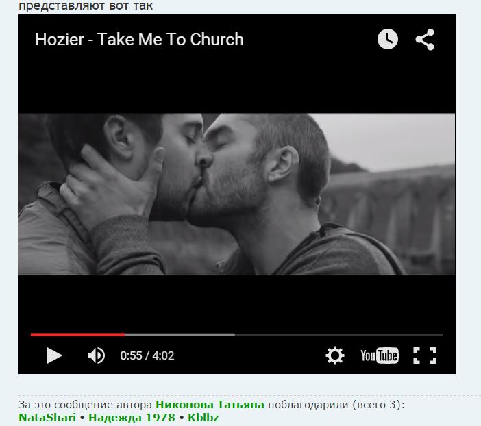 Я тоже не связала, что видео Hozier "Take me to church" именно о России. Такая история могла хоть где быть.