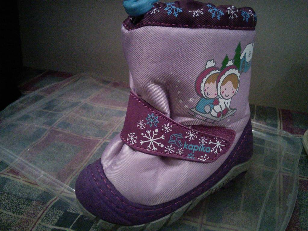 Нашла сапожки в прошлом году Мичо от Элсбет задарила-21 р. Я еще тогда подумала-тюююю, впереди лето, зима через год, перерастем.... Угу. К след зиме как-раз идеально будет....