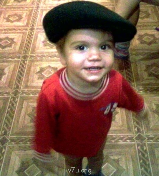 Любитель примерять чужую одежду и обувь (в папиной шапке).