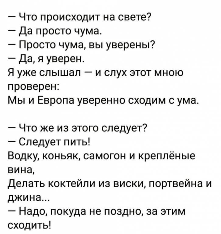 Переживём мы и отсутствие сахара и коронавирус, я сама иногда поражаюсь потенциалу русского человека. Тут у нас давиче свет отключили на полтора часа, мелкая искры метала из глаз из-за отсутствия интернета. Так её отчим ей рассказал, как они в Крыму несколько месяцев без света жили после совершения теракта Украины. Говорит как вечер, там мы всем поселком на улице встречаемся, общаемся. Померились говорит даже те, кто в разводе лет 10 был