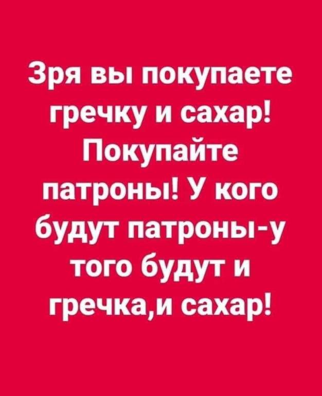 22. Успокаивающие себя: "Я не паникую, а 500 рулонов туалетной бумаги, 300 килограмм гречки и 200 банок тушенки все равно когда–нибудь пригодятся, да и квартиру украшают".