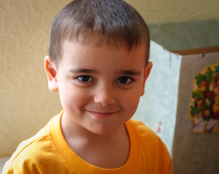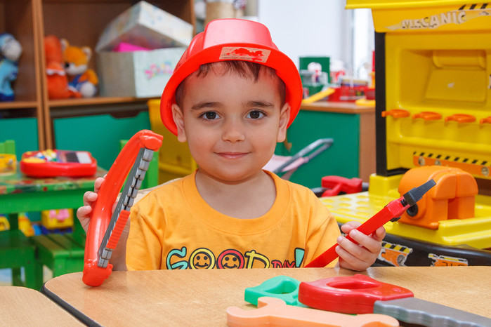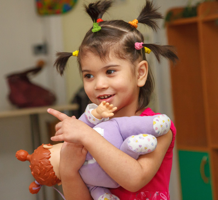 А Ульяна в этой славной троице – самая старшая. Ей пять лет. Девочка очень веселая и активная, хорошо контактирует с детьми и взрослыми. Любит играть с куклами, в больницу и парикмахерскую. Ульяна удивительно заботливая. Воспитатель рассказывает, что девочка увидела вывернутый наизнанку носок у одного из мальчишек, сразу же указала и даже сама была готова исправить непорядок в одежде. И уж конечно особенно внимательно относится Ульяна к своему младшему брату. Только мы начали фотографировать детей, старшая сестра тут же схватила каску и мягкую игрушку, чтобы предложить Данилу в качестве реквизита.