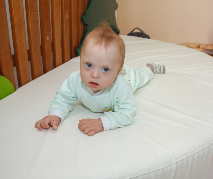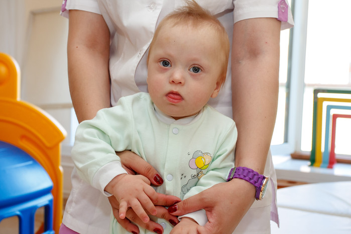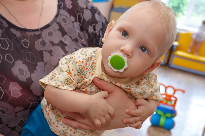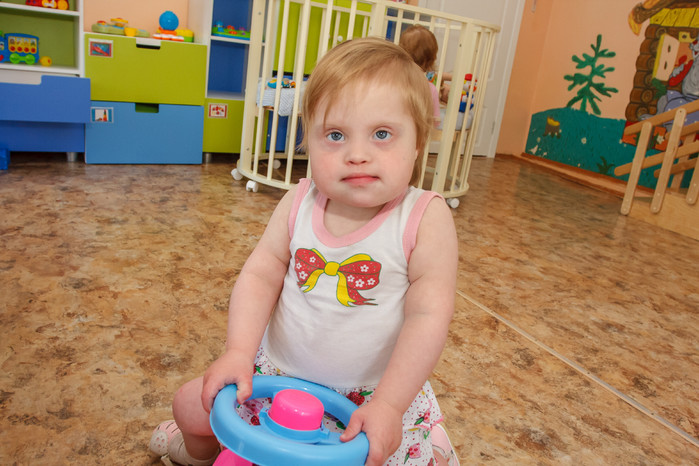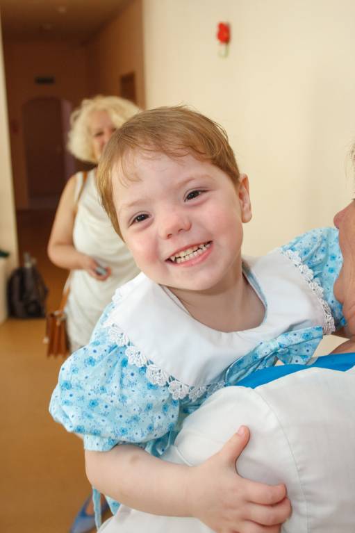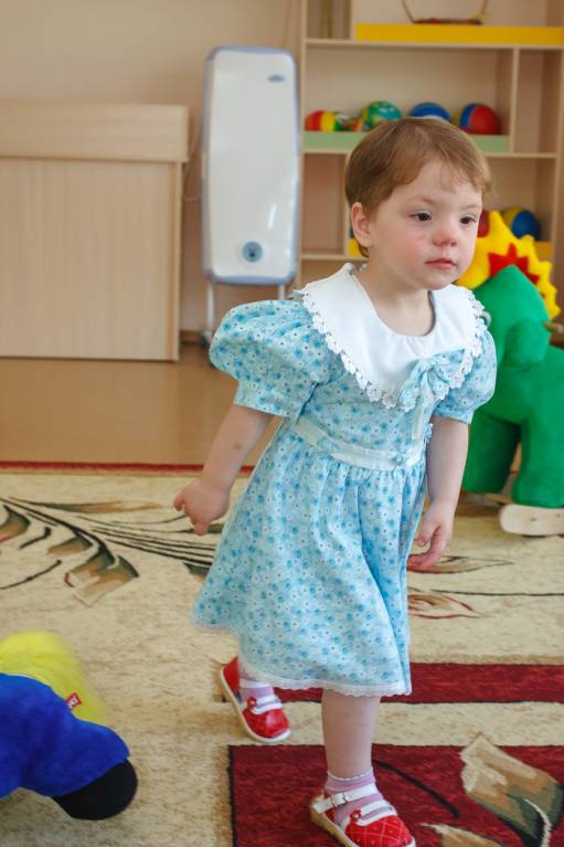 Андрей оказался в детском учреждении практически новорожденным. Сейчас ему год и месяц. Сашенька будет праздновать трехлетие в сентябре. Однако, несмотря на ее старшинство, брат и сестра примерно одного роста. Развитие девочки сообразно ее заболеванию. У Андрея явных проблем по здоровью не проявляется.