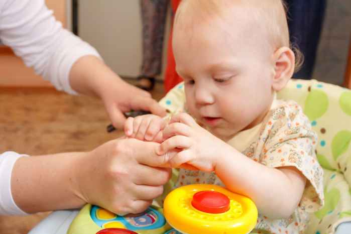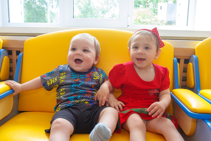 Дети друг друга знают. Андрей всегда улыбается сестре и тянется к ней ручками. Если воспитатель называет имя братишки, Саша сразу реагирует, подходит к нему и гладит.