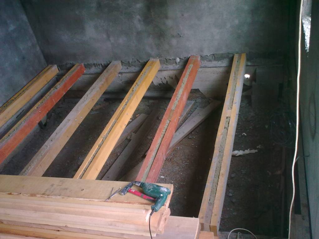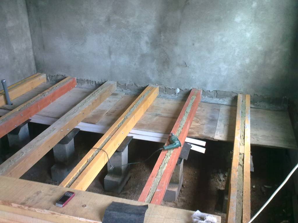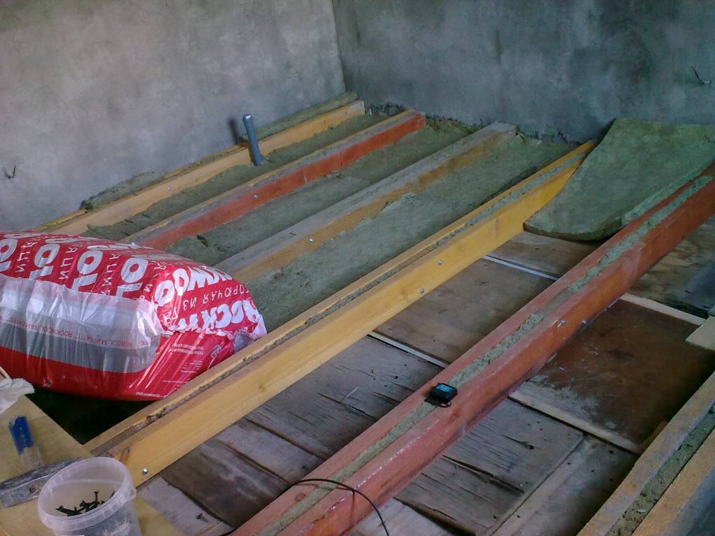 У нас деревянные балки - доска 50х150 на ребро сдвоенная между досками прокладки из такой же доски, т.е. балка получается 15 см в ширину. Между досок проложен утеплитель роквул обычный мягкий. Балки уложены на фундамент, на расстояние 60 см (ширина утеплителя) под балки проложен технониколь, чтоб от фундамента не сырели. Снизу к балкам прикручена старая фанера и на нее между балками укладывали в разбежку (чтоб швы по рядам не совпадали) мягкий Рокву пятерку в три слоя. Вверху пароизоляция (пленка) и доска пятидесятка на гвозди. На полу первого этажа спать можно. Потолок он же пол второго этажа сделан по такому же принципу.