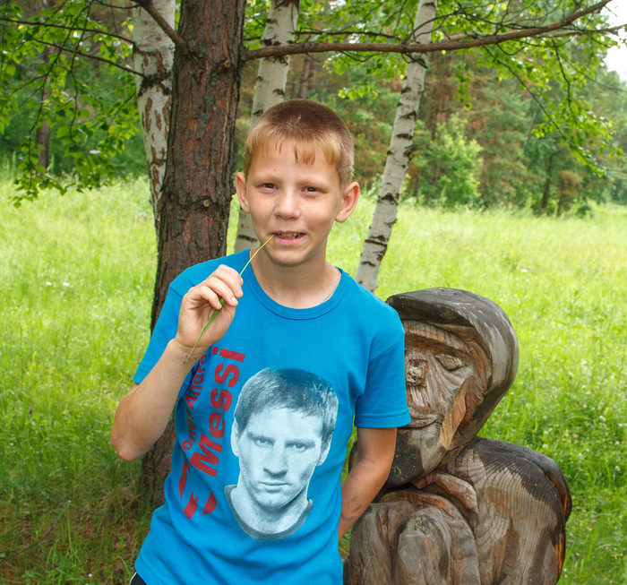 Эту песенку хотелось петь после знакомства с Сергеем. Он первым вышел к нам с фотографом Валерий Касаткин из корпуса оздоровительного лагеря и легко откликнулся на предложение посниматься, даже ни о чем не спрашивая. Думается, Сергей прекрасно понимает, зачем организована эта фотосессия. Мальчишка жил уже в приемной семье, но она была лишена прав. Не знаю, что именно там случилось, однако все жившие в ней ребята вернулись в детский дом. Старшие уже выпустились во взрослую жизнь. А Сергей остался. Его биологическая мать лишена родительских прав, вместо отца – прочерк.