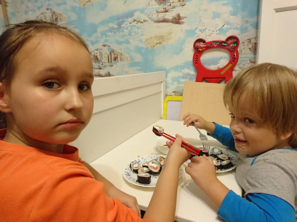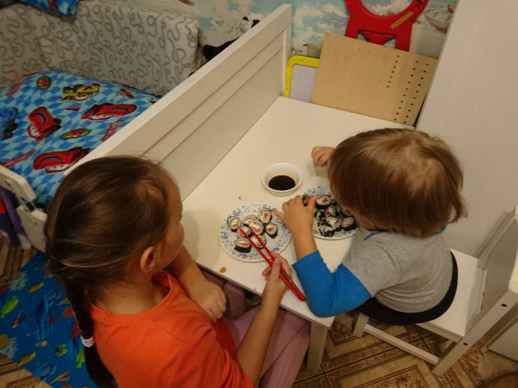 Сенька и роллы. Страшно сказать, он их не только закручивал, он их СЪЕЛ. С соевым соусом!